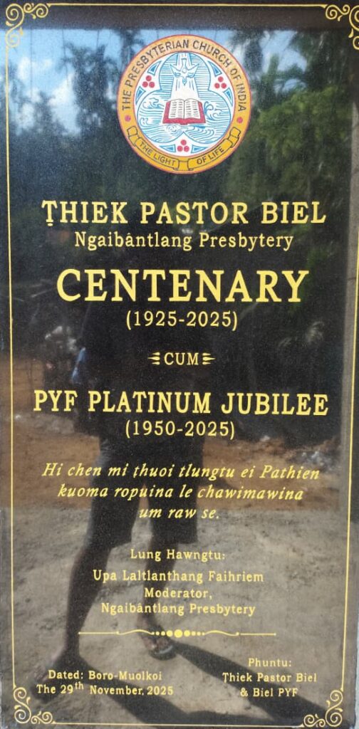 The Thiek Pastor Biel, which is under Ngaibantlang Presbytery of the Cachar Hills Tribe Synod, Presbyterian Church of India, joyfully celebrated its Centenary from 27th to 30th November 2025 (1925-2025) at the Headquarters, Presbyterian Church of Boro Muolkoi, Dima Hasao, Assam. It was a historic and spirit-filled gathering, marking 100 years of God’s unfailing guidance, provision, and grace upon the Church and its people. This momentous occasion was also observed together with the Presbyterian Youth Fellowship (PYF) Platinum Jubilee (1950-2025), making the celebration even more meaningful.